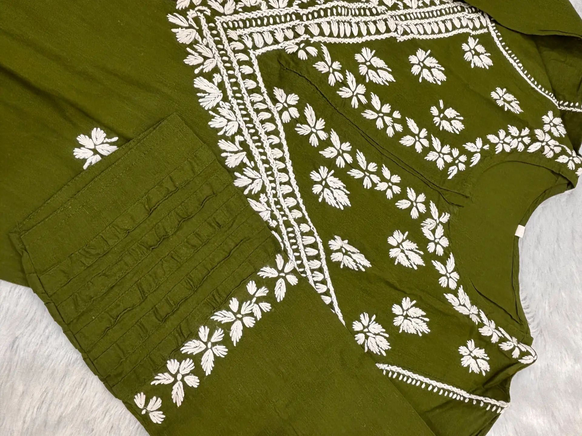 DARK GREEN COTTON HAND EMBRIODERY KURTI